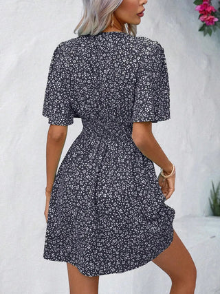 Blue Ditsy Floral Tie Front Mini Dress with Ruffled Flutter Sleeves