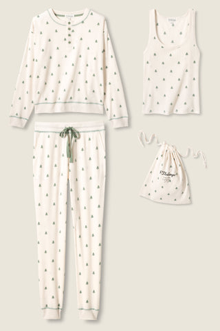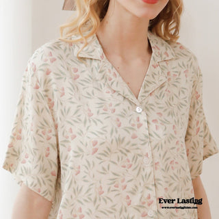 Pastoral Floral Short-Sleeve Long-Pants Pajama Set / Green