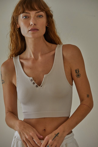 Zenana Stone Washed Ribbed Cap Sleeve Seamless Tank Top in Sand Beige