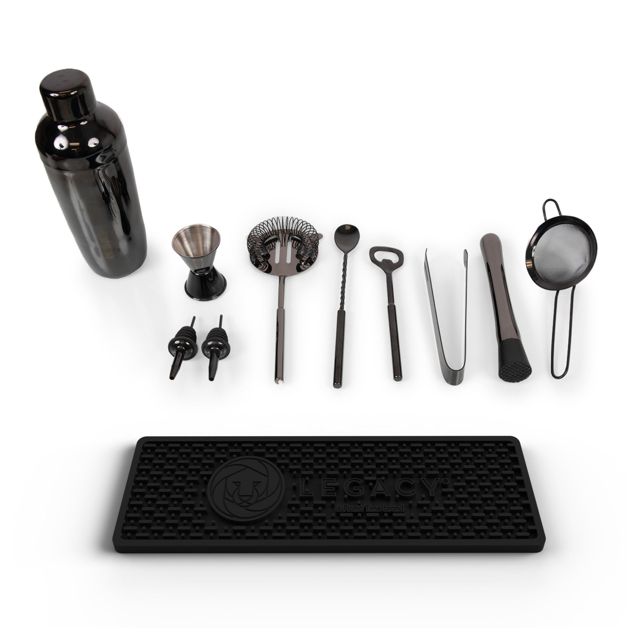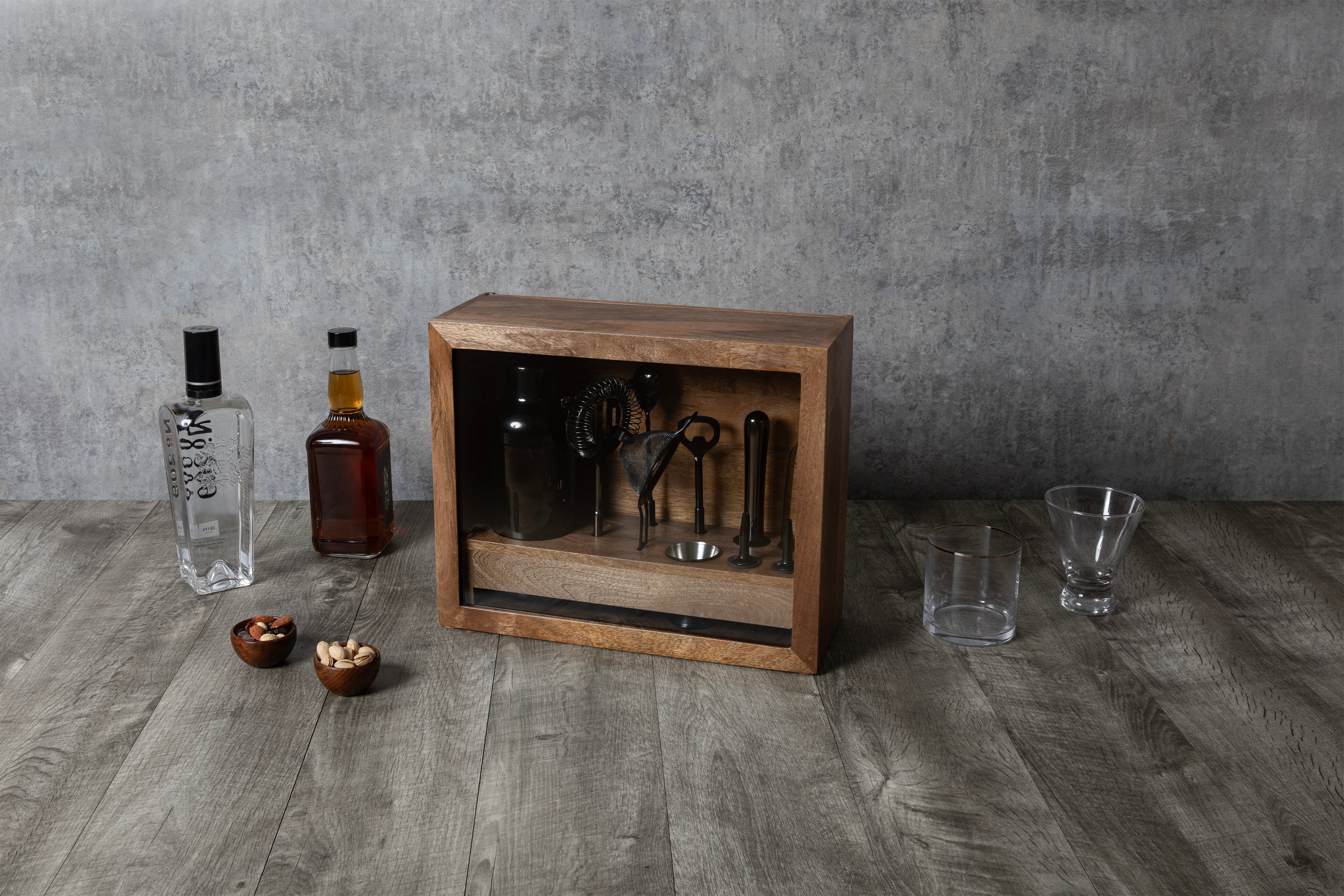 The Old Fashioned Bartender Kit is a compact, professional-grade cocktail tool set for the sustainably-minded mixologist. With a case made of sustainable mango wood sourced from India, this travel bartending set features a 10-piece array of black stainless steel tools including shaker, strainer, skimmer, stir spoon, bottle opener, muddler, tongs, jigger, pour spouts, and bar mat. Even on the go, you can keep your most important cocktail tools organized and easily accessible with this attractive and convenient set. How many times have you arrived at the function only to lament - there’s not muddler anywhere in sight?! How will you ever make a passable mojito now?! Never again suffer this terrible fate - now that you’ve got the Old Fashioned Bartender Kit, you’re ready for anything the night can throw you. Well, anything cocktail-related, at least… Post-cocktails, you’re on your own!