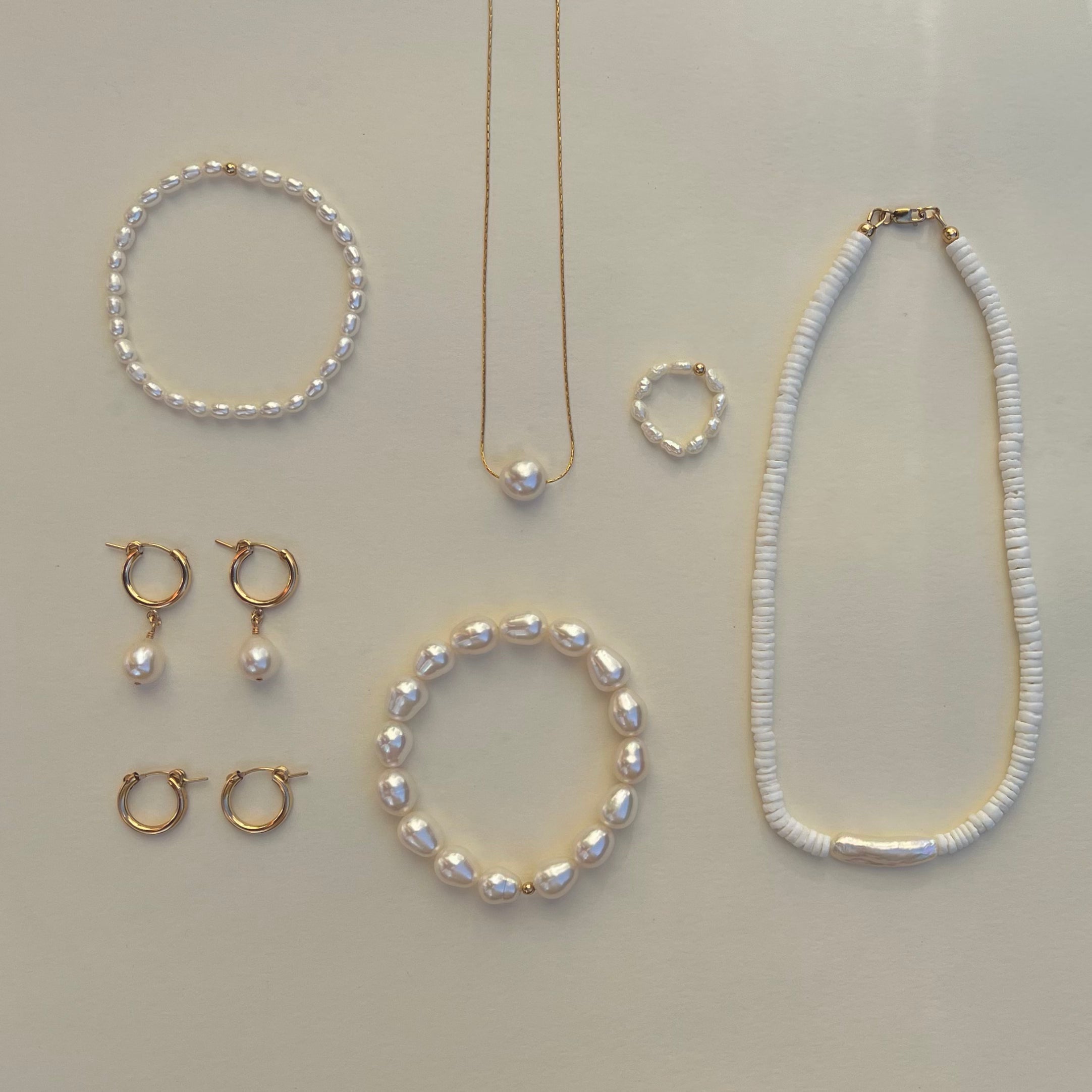 Vintage freshwater pearls, elastic durable string, .925 sterling silver or 14k gold-filled bead.