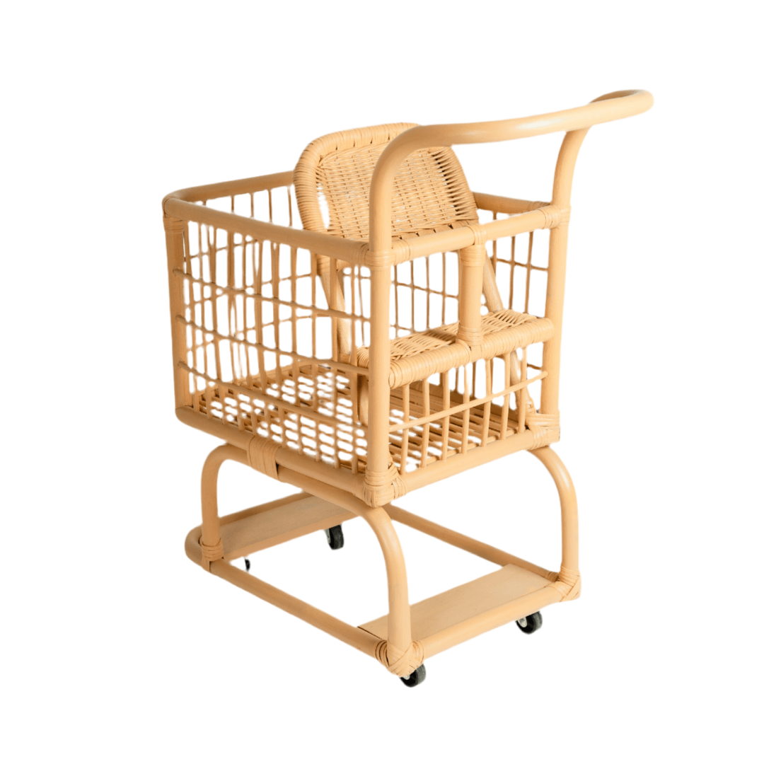 Our Kids Rattan Shopping Cart is the perfect companion for little ones as they embark on their imaginative grocery adventures.